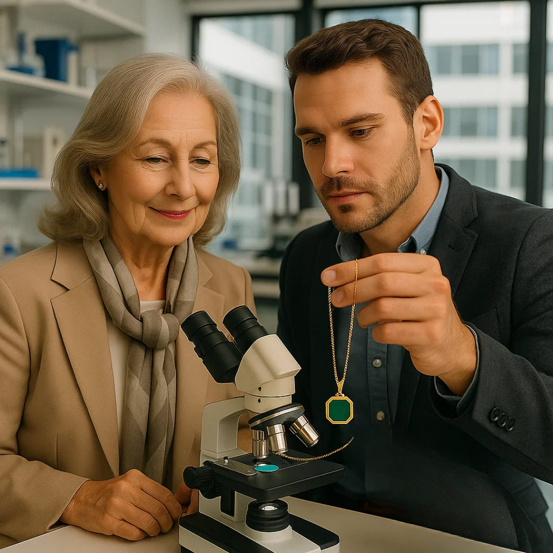 Janice describes how it went: "Sarah, do you see this little square in the center of the pendant?" she said "Yeah, it's gorgeous – what is it?"